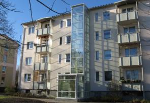 Aufzugsanbau am 4-geschossigen Wohnhaus in Lübbenau
